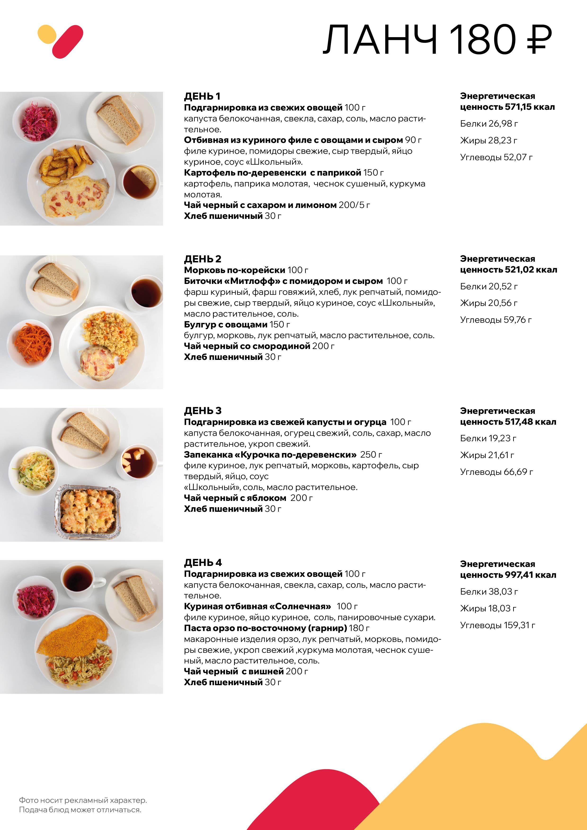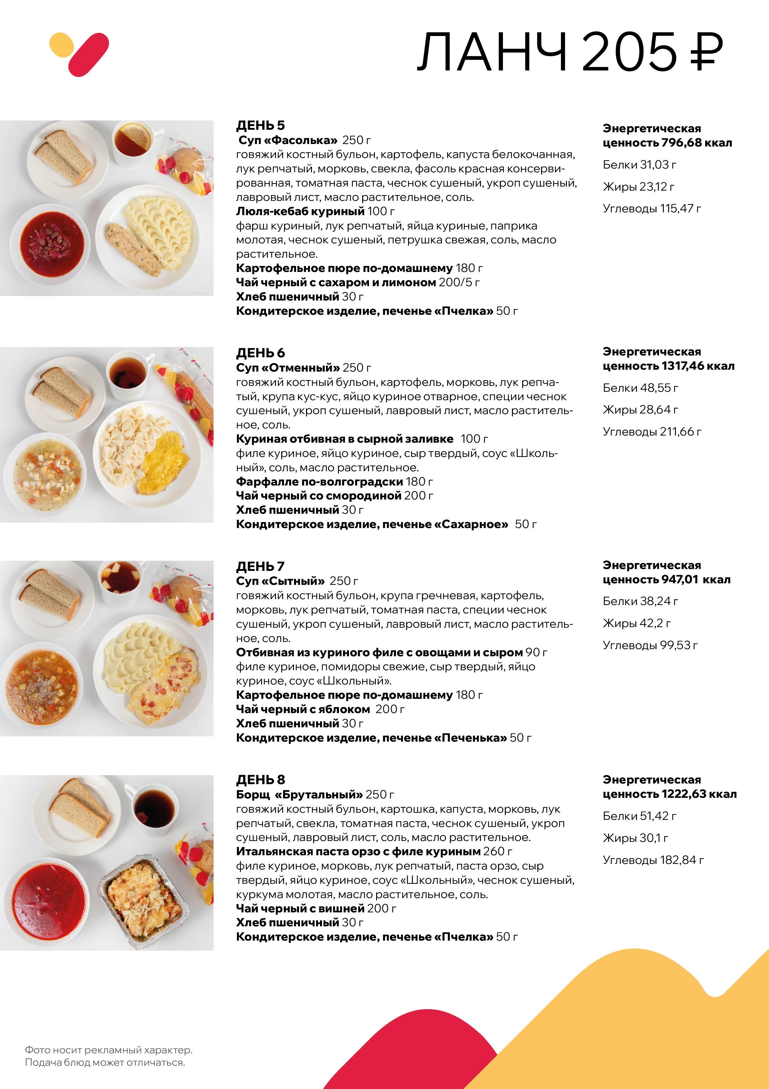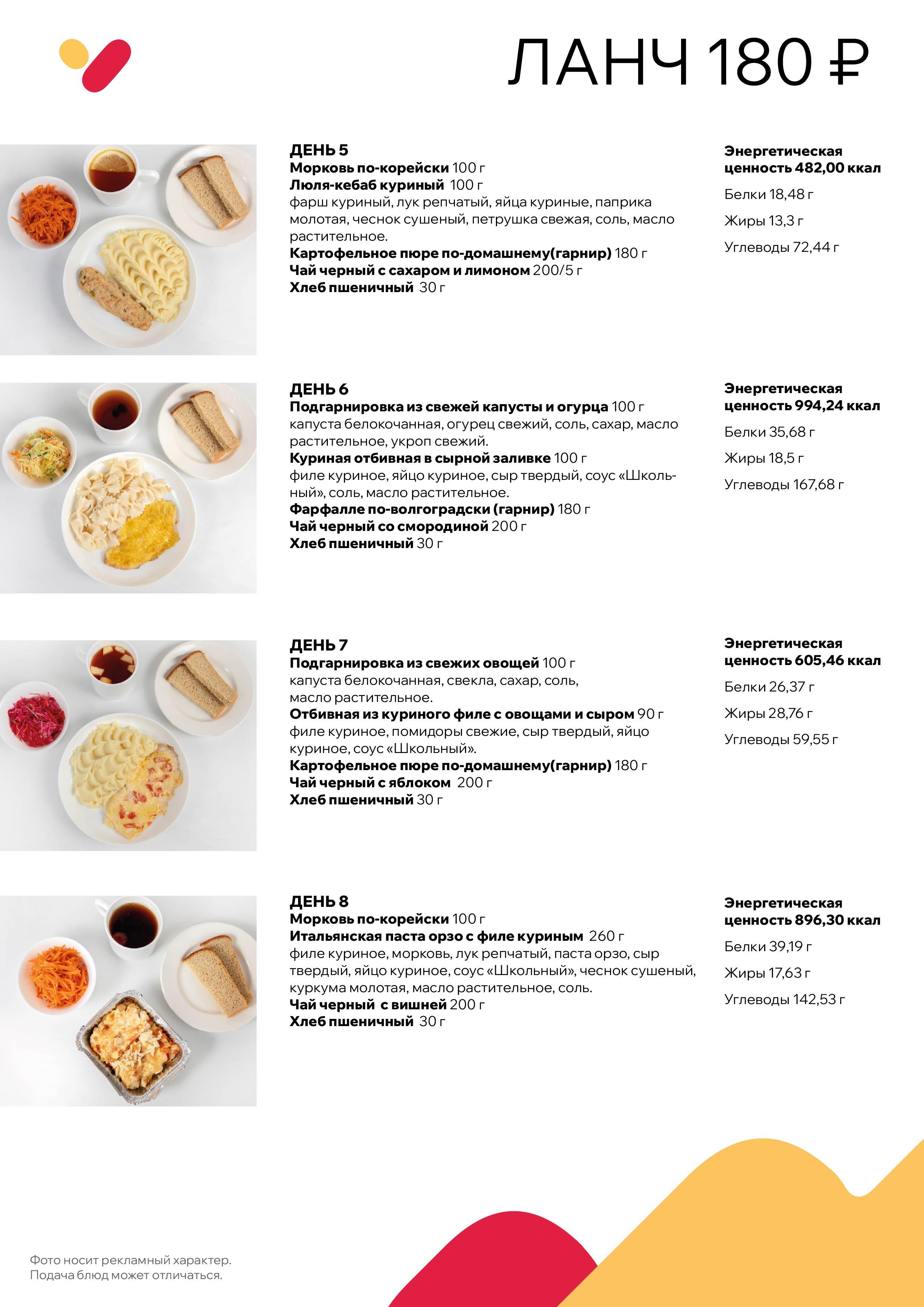 Для обучающихся 1-11-х классов всех категорий, кроме ОВЗ и детей-инвалидов питание предоставляется согласно списку в размере 124, 66 рублей. Дети-инвалиды и обучающиеся с ограниченными возможностями здоровья 1-11 классов на основании заключения медико-социальной экспертизы будут получать льготное двухразовое питание в размере 160, 66 рублей.Для организации горячего питания учащихся с 1-11-х классов за счет средств родителей и учащихся получающих бесплатное питание составлено меню, утвержденные руководителем управления Роспотребнадзора, в которых не допускается повторение одних и тех же блюд. На выбор есть 3 варианта ежедневного меню. Ланч №1, Ланч №2 Ланч №3, стоимостью 80 руб, 180 руб и 205 руб соответственно. Ежедневно в обеденном зале вывешивается, утвержденное директором школы меню, в котором указываются сведения об объеме блюд и названия кулинарных изделий. За каждым классом в столовой закреплены определённые обеденные столы. Дежурство в столовой организовано учителями. Каждую перемену работает буфет.Предоставление бесплатного питания обучающимся из малообеспеченных семей производится на основании заявления родителей или лиц, их заменяющих, и справки территориального управления УСЗН Волгоградской области.Для предоставления бесплатного питания обучающимся, стоящим на учете у фтизиатра, родители или лица их заменяющие, должны предоставить в школу заявление и медицинскую справку, подтверждающую факт постановки ребенка на учет у фтизиатра.Предоставление бесплатного питания обучающимся из многодетных семей производится на основании заявления родителей или лиц, их заменяющих, и копии удостоверения многодетной семьи.Предоставление 2-х разового бесплатного питания детям-инвалидам и детям с ОВЗ производится на основании заявления родителей или лиц, их заменяющих, и копии медицинского заключения (только при очной форме обучения).