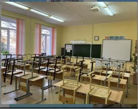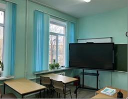 Классы просторные и светлые — большие окна пропускают много солнечного света, а регулируемые жалюзи помогают создать комфортную обстановку в яркий полдень. Материально-техническая база учебных кабинетов приведена в соответствие с условиями реализации ФГОС начального, основного и среднего общего образования: помещения оборудованы необходимой удобной мебелью в соответствии с возрастными особенностями, аудиторными досками, стендами, шкафами для учебных наглядных пособий.Мебель подобрана по возрасту: удобные парты и эргономичные стулья позволяют сохранять правильную осанку. На подоконниках — комнатные растения, которые добавляют уюта и очищают воздух. В каждом классе — интерактивная доска и проектор: уроки
