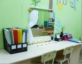 Также для удобства маломобильных обучающихся на 1 этаже расположены кабинеты: директора, логопеда, психолога, медицинский кабинет, библиотека, комната психологической разгрузки.