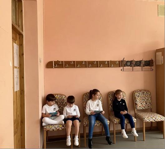 задание или просто полистать журнал. В рекреациях — живые растения, игровые зоны и стенды с работами учеников.