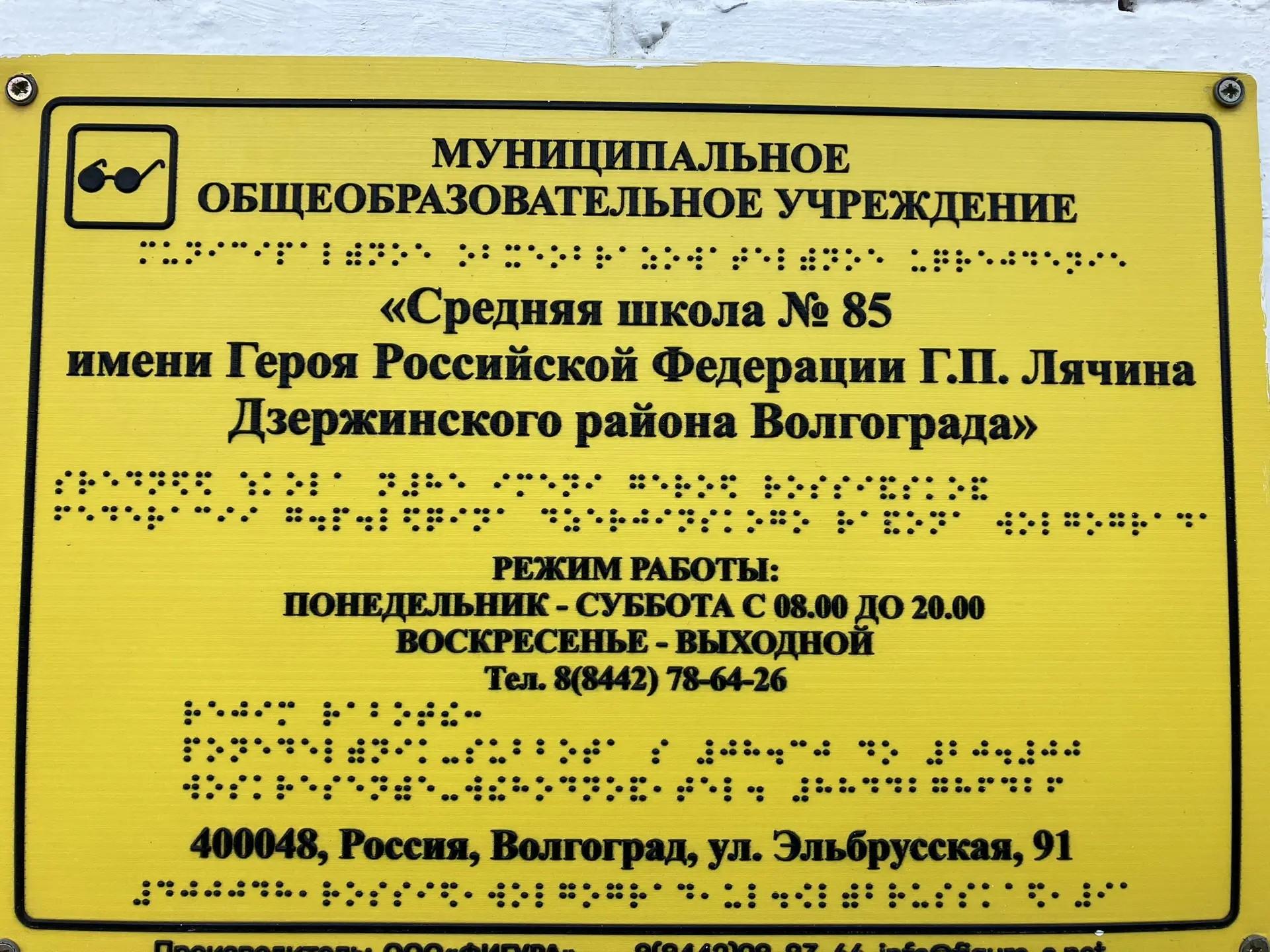 - информация об образовательной организации, на входе, для слабовидящих обучающихся, продублирована текстовой табличкой шрифтом Брайля (мнемосхем);