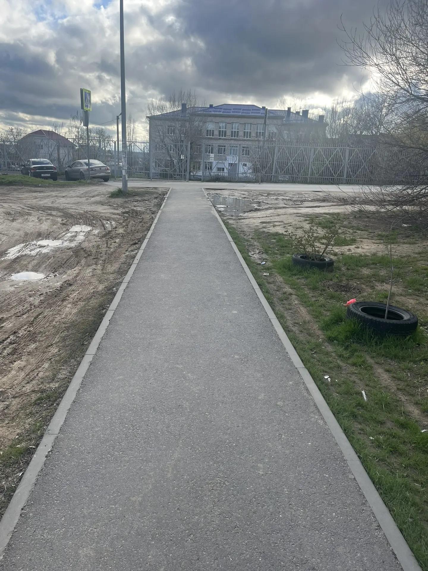 На пути от остановки общественного транспорта до территории школы проходит пешеходный тротуар с ровной поверхностью, без ям и перепадов высот. Бордюры в местах пересечения тротуара с проезжей частью понижены до уровня дороги.